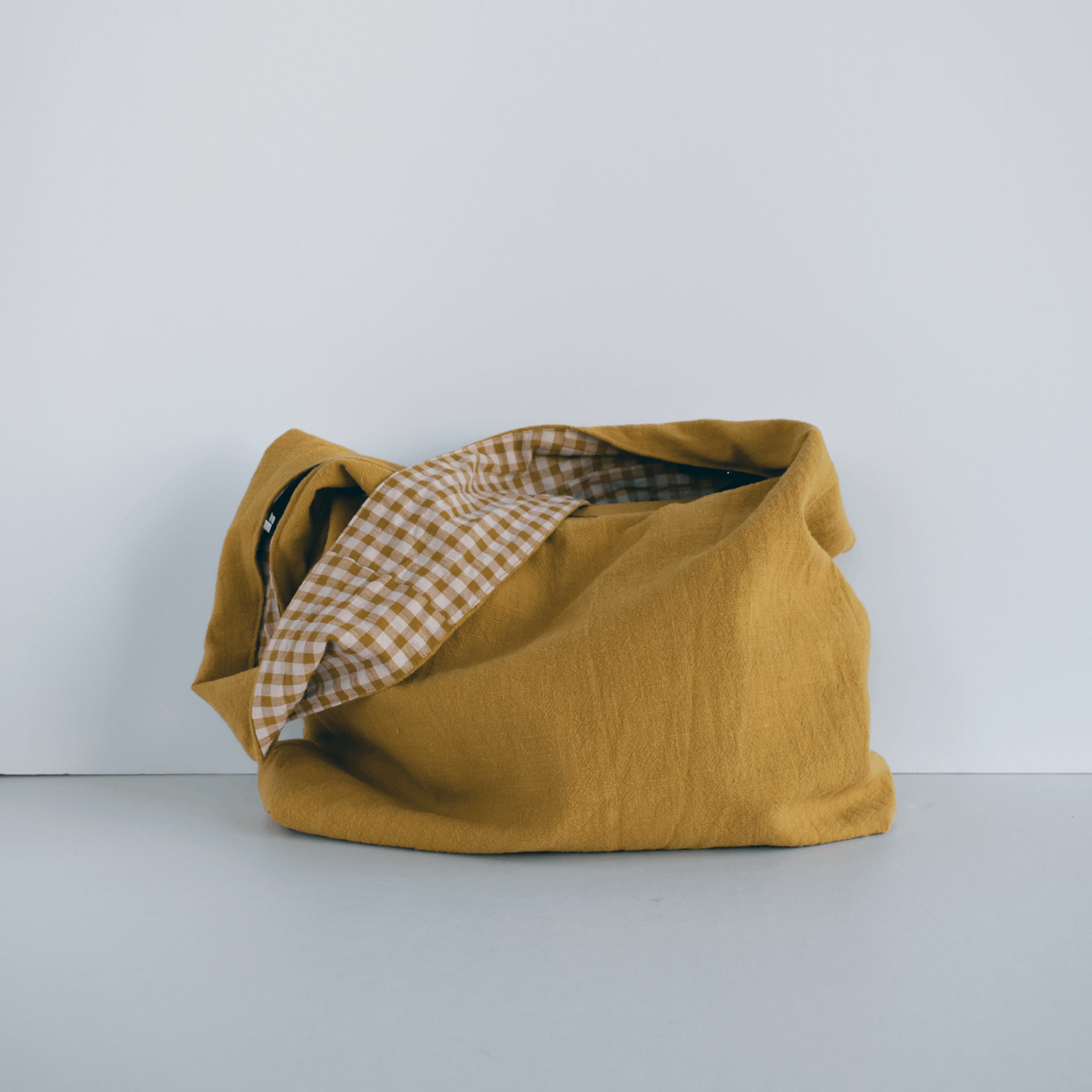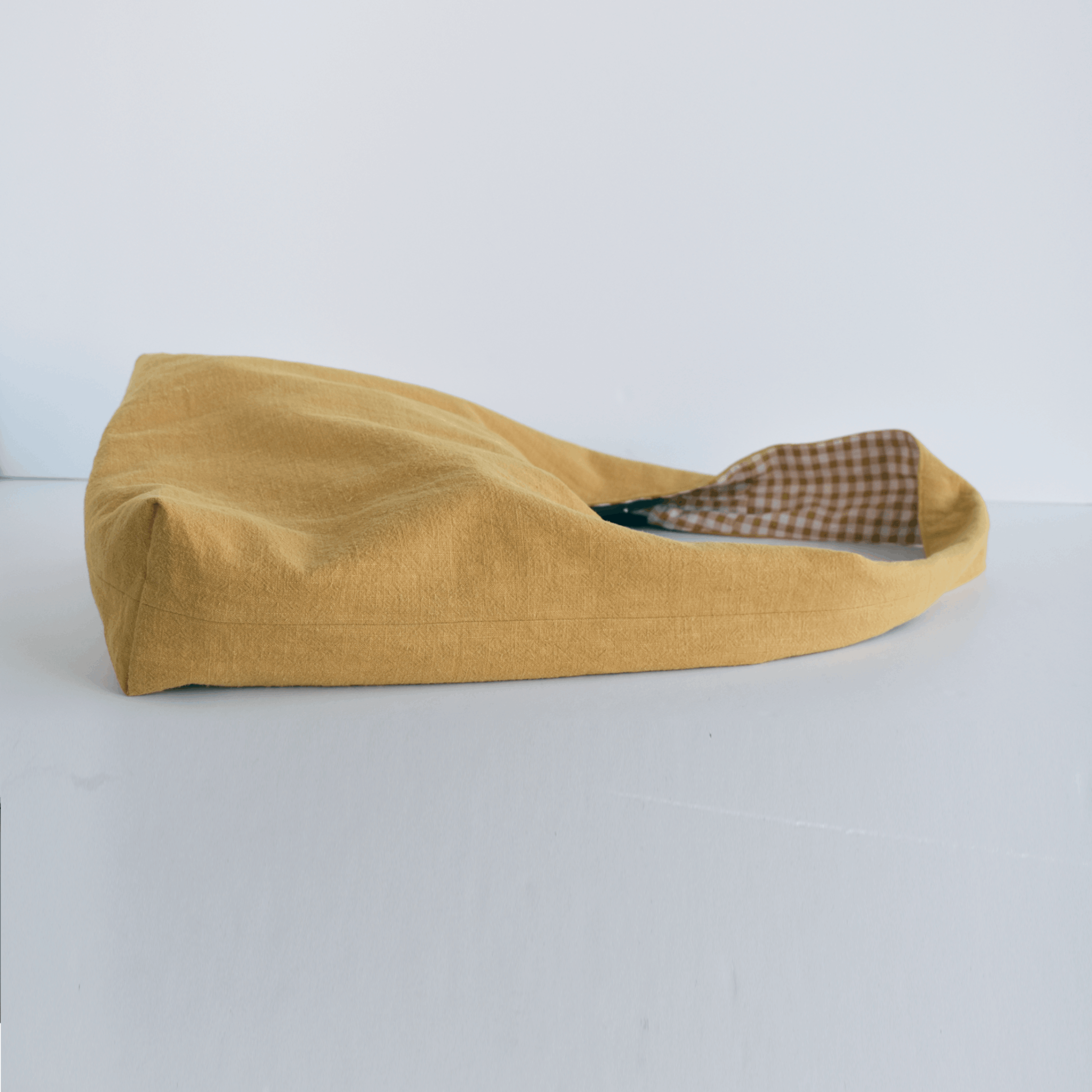 Bolso hobo en lino de mujer hecho a mano con un alegre color mostaza. Es grande y espacioso para que puedas llevarlo en el día a día.  El modelo ESTER es un bolso de hombro flexible y muy cómodo.